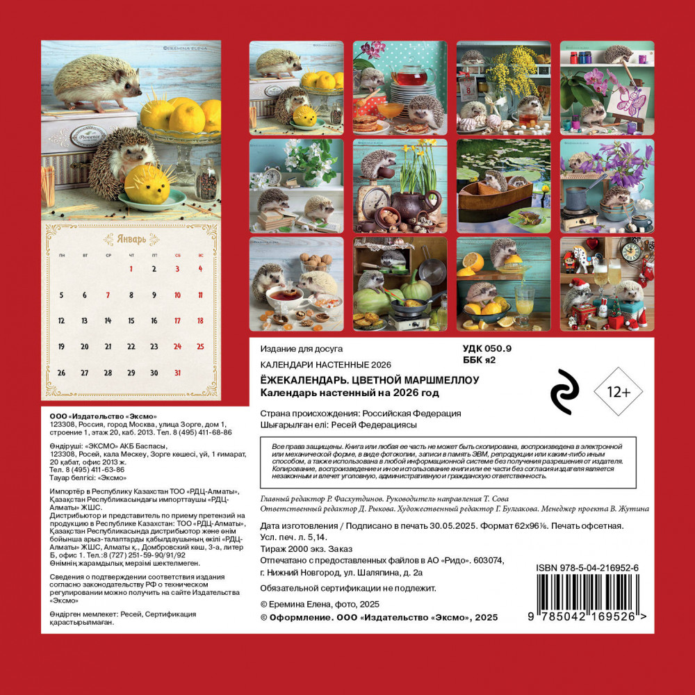 Календарь настенный на 2026 год «Ёжекалендарь. Цветной маршмеллоу»новинка -20%