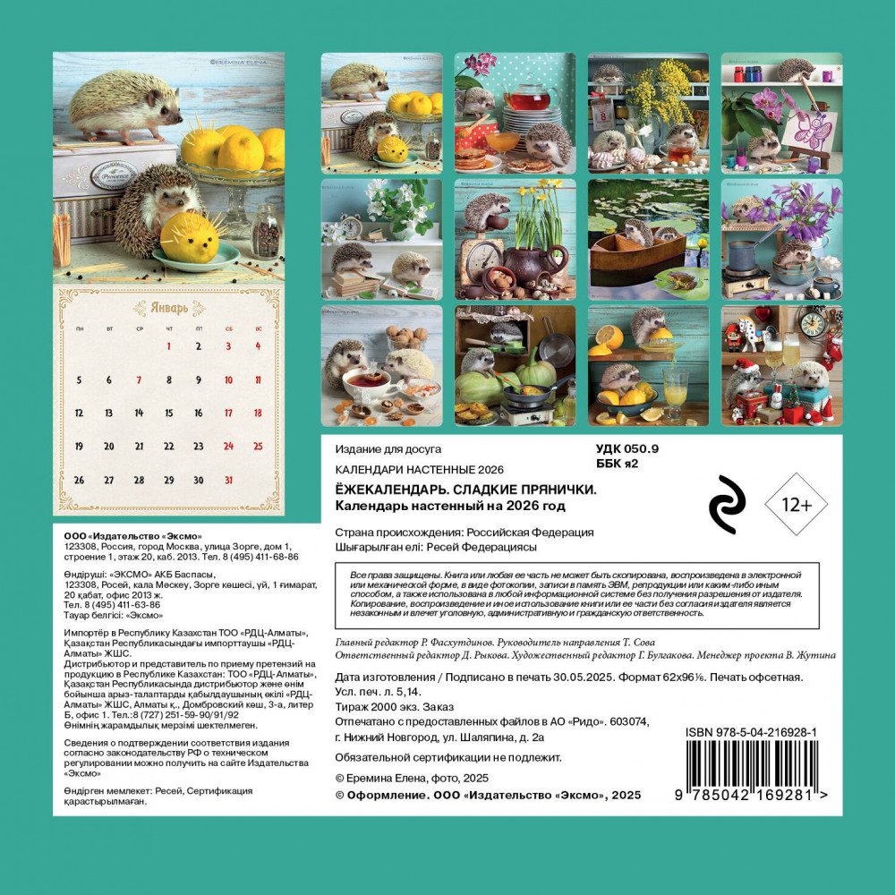 Календарь настенный на 2026 год «Ёжекалендарь. Сладкие прянички»новинка -20%