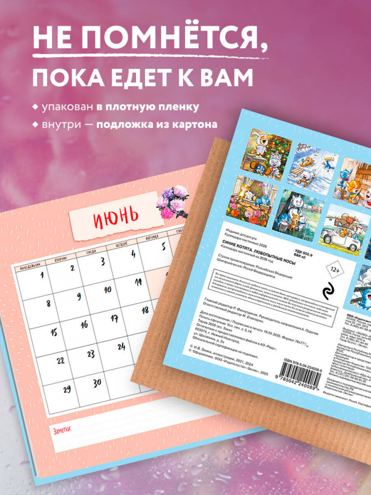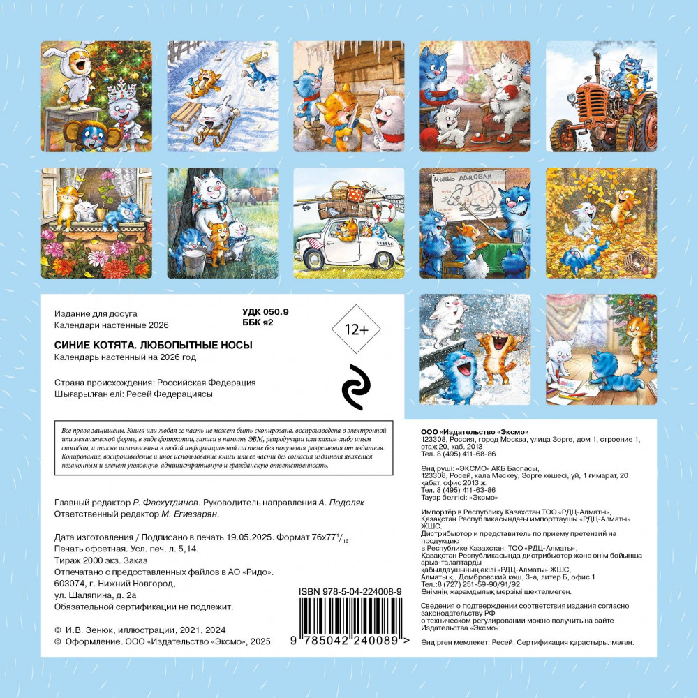 Календарь настенный на 2026 год «Синие котята. Любопытные носы»новинка В данный момент этот товар отсутствует в продаже. Возможно, у нас найдется аналогичный или похожий товар здесь. Серия: Календари настенные 2026 (170×170) Забавный милый календарь с зарисовками из жизни многодетной семьи знаменитых Синих Котов, завоевавших любовь тысяч поклонников в различных интернет-сообществах. Рина Зенюк — минская художница, герои ее рисунков — веселые и серьезные, решительные, мечтательные, очень упитанные коты синего цвета — понравятся не только заядлым любителям котиков, но и тем, кто до этого был к ним равнодушен. Свой жанр художница определяет как «котизм». Синие коты гарантированно дарят хорошее настроение и не оставят равнодушным никого! |