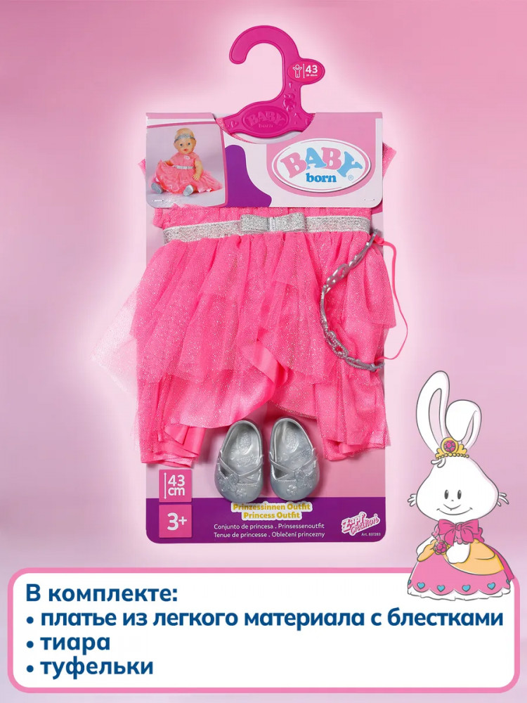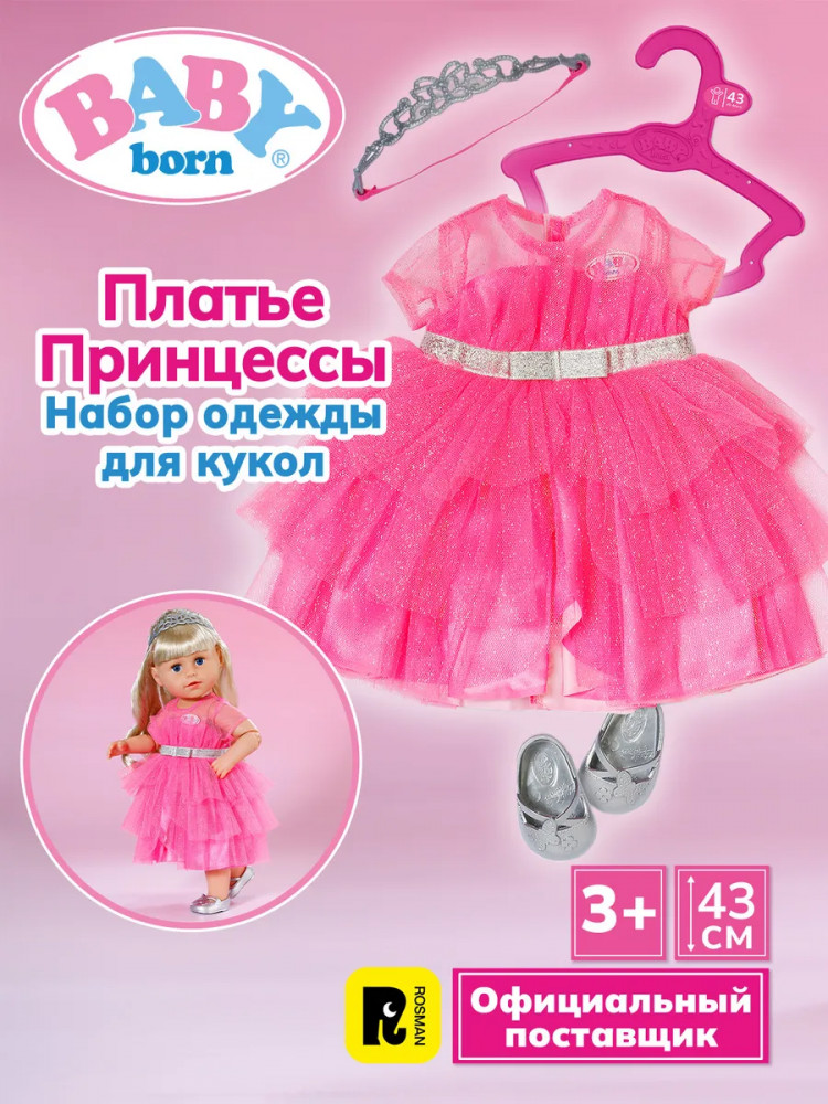 Baby Born Набор одежды для кукол с вешалкой «Платье принцессы»новинка -20%