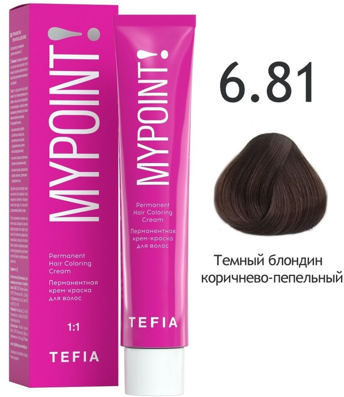 Tefia Крем-краска для волос, оттенок 6.81 Темный блондин коричнево-пепельный