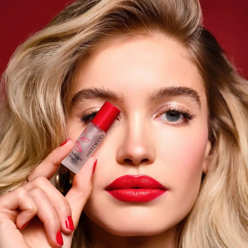 Совет: фиксатор лучше всего наносить легкими движениями по краю губ, чтобы предотвратить растекание помады. Подожди, пока фиксатор подсохнет, при этом не смыкай губы. При необходимости нанеси Magic Fix повторно. Фиксатор Magic Fix можно удалить с помощью чистящего средства на масляной основе.
