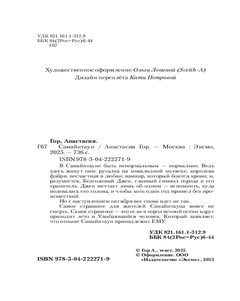 Серия: Хиты Young Adult. Коллекция В Самайнтауне быть ненормальным — нормально. Ведь здесь живут они: русалка на инвалидной коляске; королева фэйри, несчастная в любви; вампир, который боится крови; и, разумеется, Безголовый Джек, главный символ города и его хранитель. Джек мечтает лишь об одном — вспомнить, куда подевалась его голова, и чтобы хоть один год прошел без происшествий. Но с наступлением октября всё снова идет не так. Самое страшное для жителей Самайнтауна вовсе не смерть. Самое страшное — это если в город вечной осени вдруг приходит лето и Улыбающийся человек. Который заявляет, что отныне Самайнтаун принадлежит ЕМУ. |