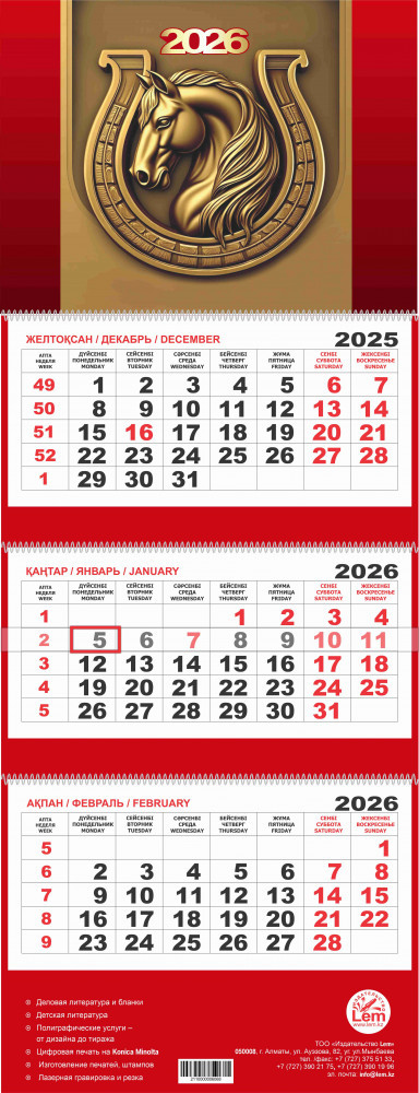 Квартальный настенный календарь РК на 2026 год «Символ года»новинка