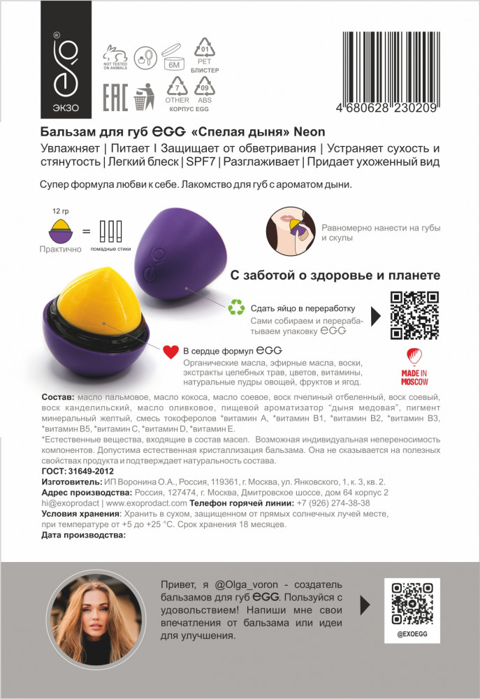 ЭКЗО Бальзам для губ «Спелая дыня»