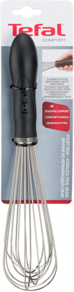 Венчик Tefal Comfort выполнен в профессиональном дизайне и имеет удобную ручку, поэтому он станет отличным помощником на кухне. Серия высококачественных гаджетов и аксессуаров Tefal Comfort создана для того, чтобы облегчить процесс приготовления любимых блюд и гарантировать идеальные результаты. Готовить легко — очень просто. Кухонные гаджеты и аксессуары Tefal Comfort созданы специально для того, чтобы взять на себя часть ежедневных задач и облегчить для вас процесс приготовления любимых блюд. Венчик Tefal Comfort выполнен в профессиональном дизайне с 10 отдельными проволоками и безупречно смешивает и взбивает любые ингредиенты и смеси.