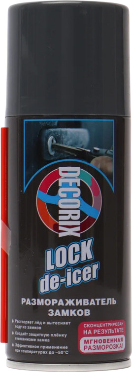 Размораживатель замков с трубочкой и силиконом высокоэффективный продукт при размораживании и для профилактики замерзания запирающих механизмов. Спрей антилёд покрывает поверхности обеспечивая отсутствие влаги даже в микроскопических шероховатостях металла а образованная пленка защищает от ржавчины и коррозии детали запирающих механизмов Антиобледенитель для замков является хорошим смазывающим средством для всех движущихся частей механизма личинки замков петли шарниры Безопасен для лакокрасочного покрытия автомобиля!