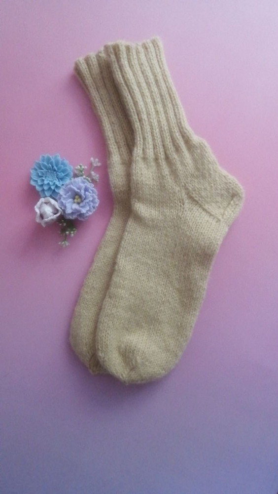 Носки мужские, ручной вязки, индивидуально изготовленные из 100% шерсти для здоровья Ваших ног. Согреют в холодные, морозные, зимние дни и вечера. Связаны на спицах с укрепленной пяткой. Резинка свободная, только облегает ногу не доставляя дискомфорта.