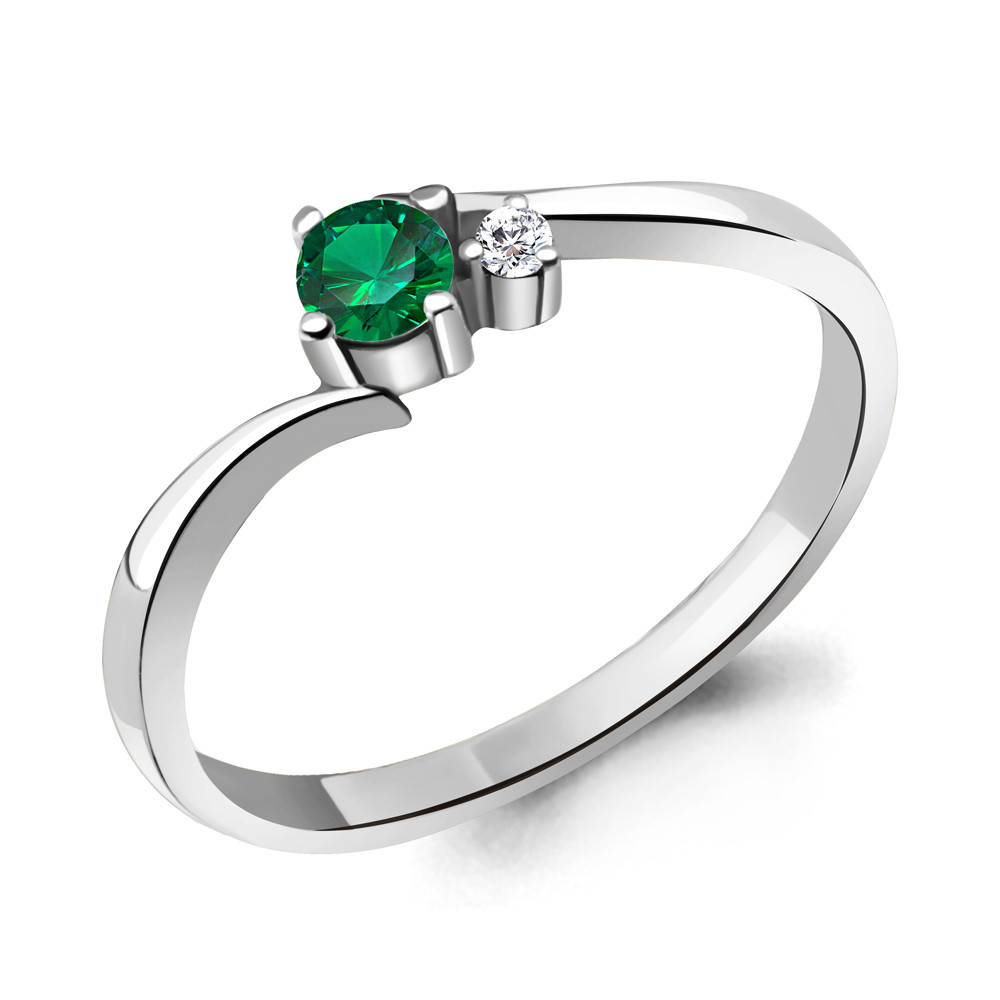 Aquamarine Кольцо из серебра с наноизумрудом и фианитом