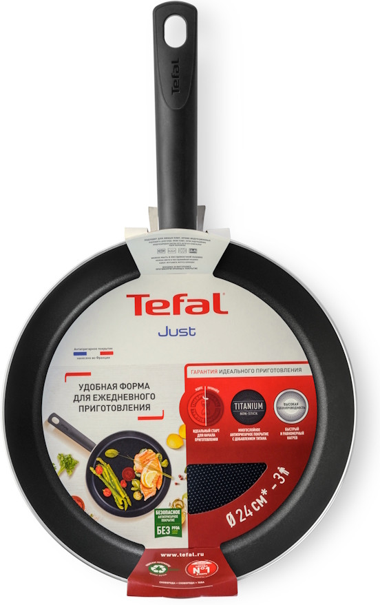 Сковорода Tefal Just — ваш незаменимый и надежный помощник на кухне. Благодаря высоким бортам модель отличается высокой вместимостью и вкупе с высококачественным антипригарным покрытием позволит комфортно готовить самые разные блюда как с использованием масла, так и без него. Для дополнительного удобства сковорода обладает фирменным индикатором нагрева Thermo-Signal, с помощью которого вы сможете наглядно определить готовность поверхности для начала приготовления.