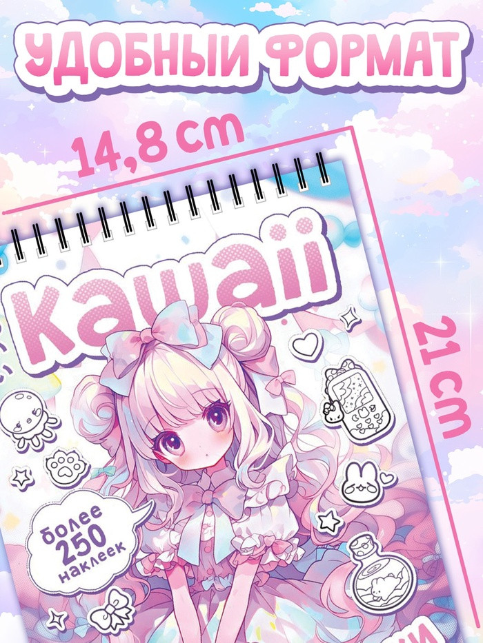 В данный момент этот товар отсутствует в продаже. Возможно, у нас найдется аналогичный или похожий товар здесь. Стикеры-раскраски «Kawaii» — это оригинальное и увлекательное развлечение для девочек, обожающих аниме и азиатскую культуру. В наборе вас ждут более 250 милых и кавайных наклеек, которые можно раскрасить в свои любимые цвета. Украсьте тетрадь, блокнот, гаджет или сделайте подарок друзьям и близким, добавив немного индивидуальности.