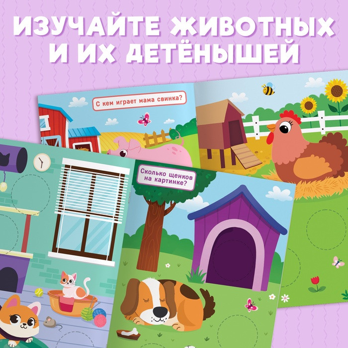 Ребёнок изучает изображения мам и малышей животных, подбирая наклейки нужного малыша к маме. Это занятие помогает формировать зрительное восприятие, внимательность и базовые навыки классификации. Книга станет отличным выбором для родителей, желающих увлечь ребёнка полезной и познавательной игрой. Её можно использовать как дома, так и в поездках. Тематика животного мира привлечёт внимание детей любого пола, а компактный формат делает книгу удобной для использования в любых условиях.