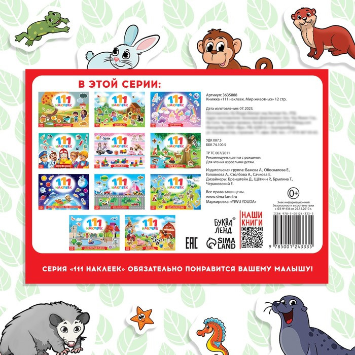 • 111 наклеек с изображениями животных из разных стран и континентов;