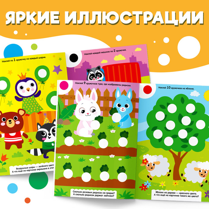 Книга с наклейками «Весёлые кружочки. Считаем и наклеиваем»новинка