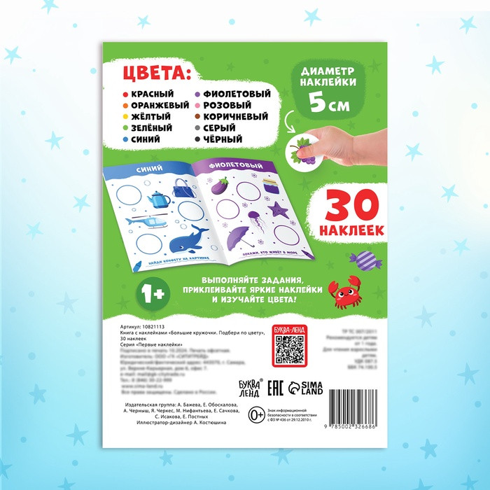 • в комплекте 30 крупных наклеек-кружочков, которые удобно держать маленькими ручками;