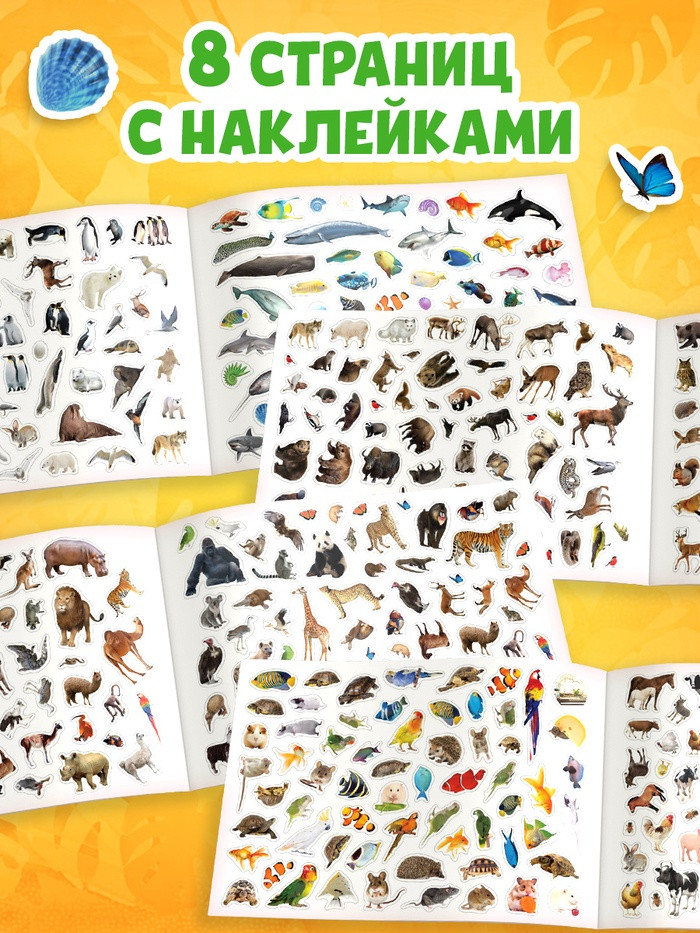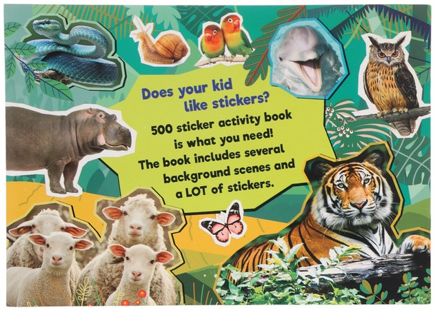 • 500 наклеек с изображениями животных, подходящих для создания аппликаций и оформления различных поверхностей;