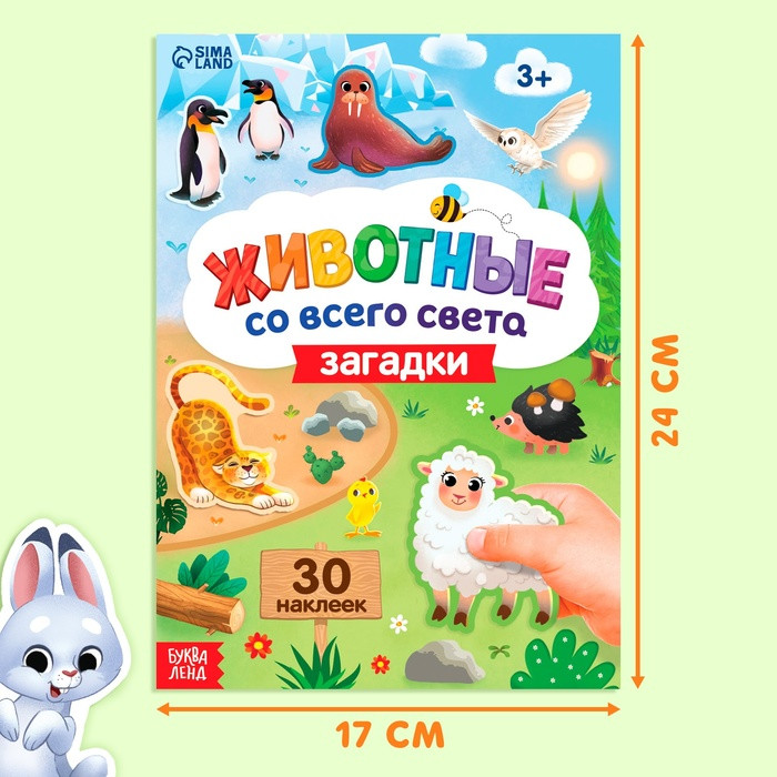 | Книжка с наклейками «Животные со всего света. Загадки»