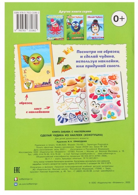 В данный момент этот товар отсутствует в продаже. Возможно, у нас найдется аналогичный или похожий товар здесь. Серия: Сделай чудика из наклеек Книжка с наклейками «Сделай своего чудика. Хохотушка» — это 8 страниц с шаблонами забавных существ и яркими стикерами для их оживления. Мягкий переплёт делает её удобной для использования дома или в дороге.