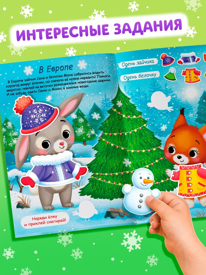 В данный момент этот товар отсутствует в продаже. Возможно, у нас найдется аналогичный или похожий товар здесь. Книжка с наклейками-одевашками подарит малышу праздничное настроение и увлекательные занятия. Ребёнок сможет наряжать сказочных персонажей, создавая для них яркие образы и одновременно читая новогодние истории.