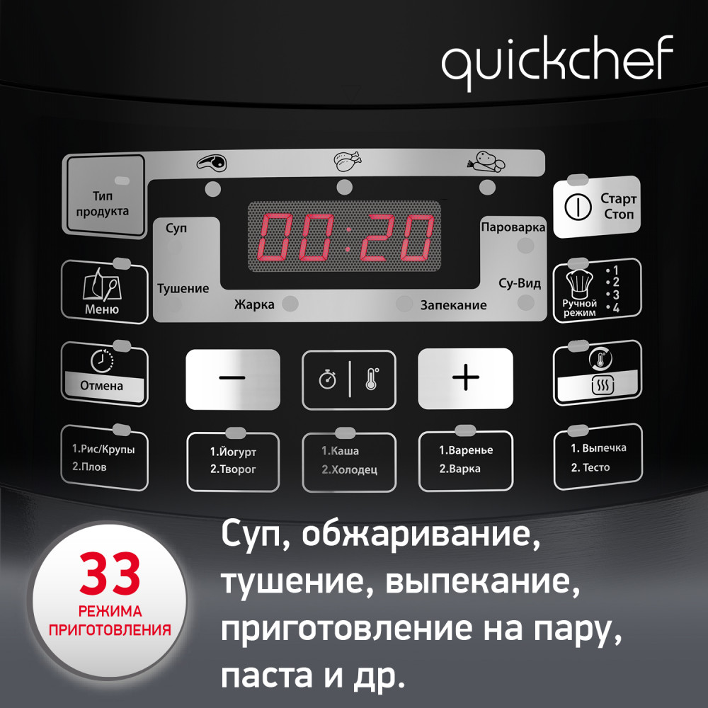 Быстро. Безопасно. Легко. Мультиварка-скороварка Moulinex Quickchef — это ваш универсальный помощник на кухне, с которым приготовление любого блюда станет легким и приятным занятием. Мультиварка имеет 33 автоматические программы для любимых и новых рецептов, включая приготовление супов, тушения, обжаривания, выпекания, приготовления на пару и по технологии су-вид. Режим приготовления под давлением позволяет готовить блюда в несколько раз быстрее. Режим поддержания температуры сохраняет блюдо теплым в течение 24 часов после окончания программы, а функция отложенного старта обеспечивает приготовление к нужному времени. Откройте быстрый и удобный способ готовить разнообразные блюда одним касанием. Универсальная мультиварка Готовьте каждый день новое блюдо благодаря большому набору автоматических программ и режимов: суп, тушение, обжаривание, выпекание, приготовление на пару, су-вид, рис/крупы, плов, йогурт, творог, каша, бобовые, варенье, паста, десерт/пирог, тесто, подогрев и многое другое. |