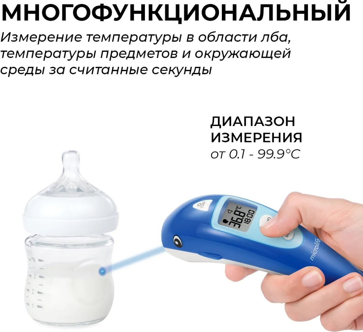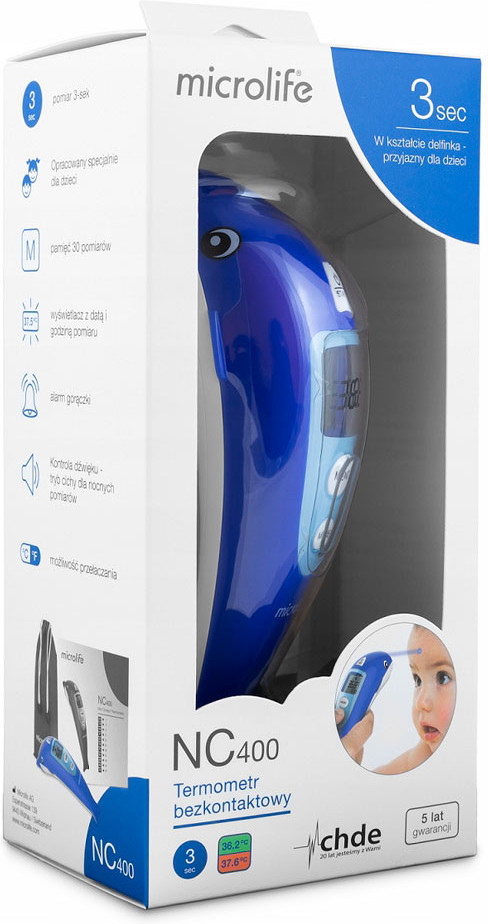 Бесконтактный термометр Microlife NC 400, в дополнение к надежности, точности и простоте в обращении, позволяет аккуратно и неинвазивно измерять температуру тела, не касаясь пациента. Уникальный дизайн дельфина был специально разработан, чтобы сделать измерение более приятным для детей.