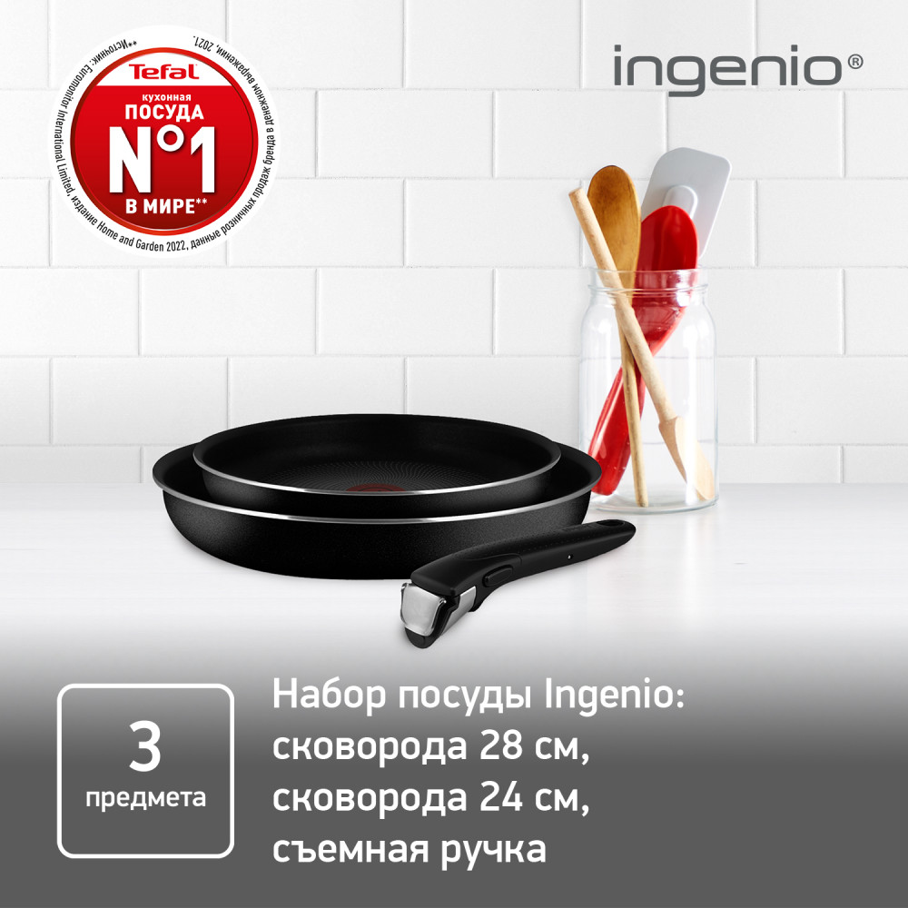 Набор сковород Tefal Ingenio Black создан для практичного ежедневного приготовления ваших любимых блюд.Сковороды имеют прочное дно Durabase, которое обеспечивает идеально равномерное распределение тепла по всей посуде. Внутреннее антипригарное покрытие Powerglide позволит готовить пищу с минимальным количеством масла, а также гарантирует повышенную износостойкость даже при длительном использовании кухонного набора.