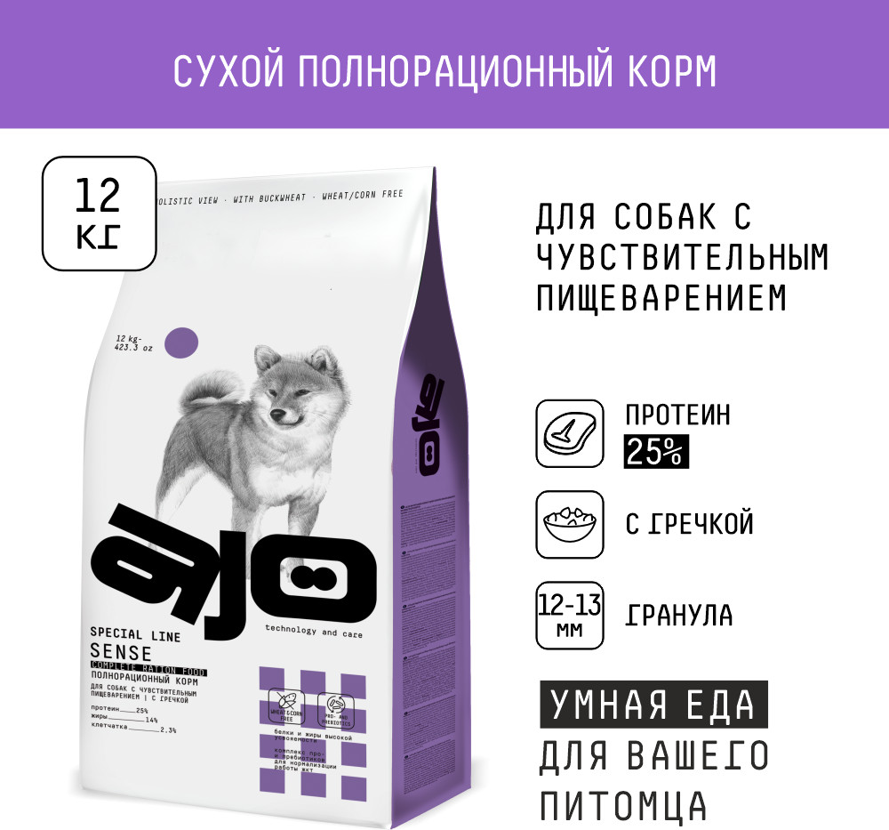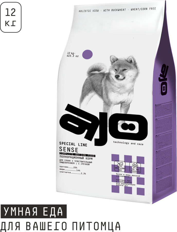 AJO Сухой полнорационный корм с гречкой для собак с чувствительным пищеварением