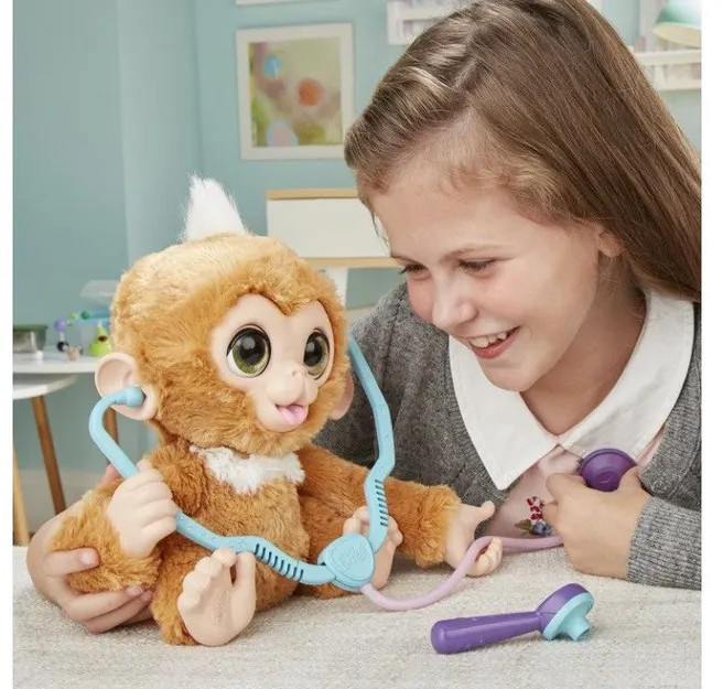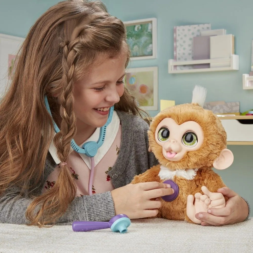 Hasbro Игрушка «Вылечи Обезьянку»В данный момент этот товар отсутствует в продаже. Возможно, у нас найдется аналогичный или похожий товар здесь. Серия: FurReal Friends Малышка-обезьянка готова к осмотру. Хочешь почувствовать себя настоящим ветеринаром? Тогда аккуратно нажми на грудь рукой или стетоскопом, чтобы послушать, как бьётся сердце. Затем обязательно измерь температуру с помощью термометра. Когда обезьянке лучше, она издаёт милые звуки. Если вдруг она закашляет, успокой её, поглаживая по голове. С нежной заботой малышка быстро пойдёт на поправку. Обезьянка в упаковке с функцией TRY-ME.  |
