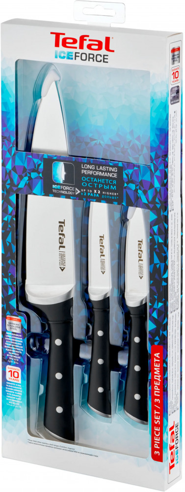 Серия: Ice Force Кухонные ножи Tefal Ice Force: профессиональное качество и долговечность в ваших руках. Очищайте от кожицы и косточек, нарезайте дольками или кубиками или измельчайте по-своему любые продукты, от мяса до фруктов и овощей. Набор ножей Ice Force состоит из 3 острых, высококачественных и долговечных ножей, в которых сочетаются инновационные технологии и премиальный дизайн. |