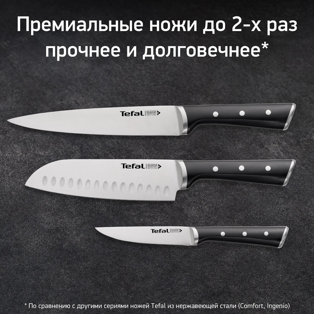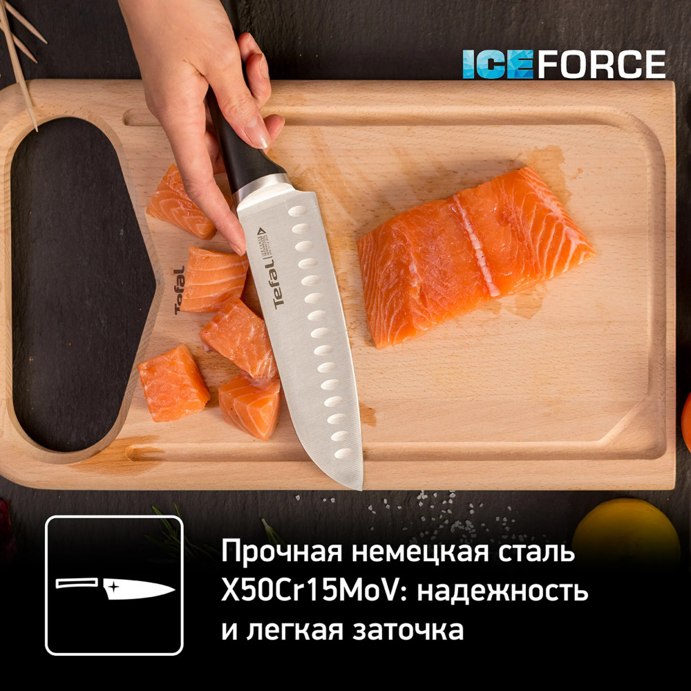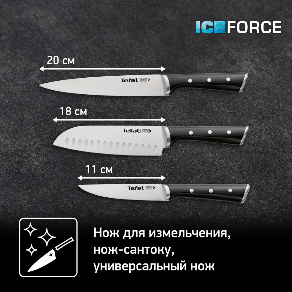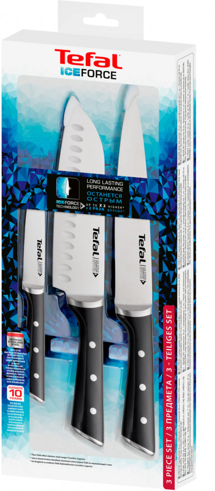 Серия: Ice Force Набор кухонных ножей Tefal Ice Force — сочетание функциональности и стиля. Особенностью приборов является совокупность уникальной технологии заточки и обработки лезвия, которое подвергается резкому охлаждению до −120°C после нагрева. Этот процесс значительно повышает прочность и устойчивость к коррозии, обеспечивая его исключительную остроту на долгие годы эксплуатации. |