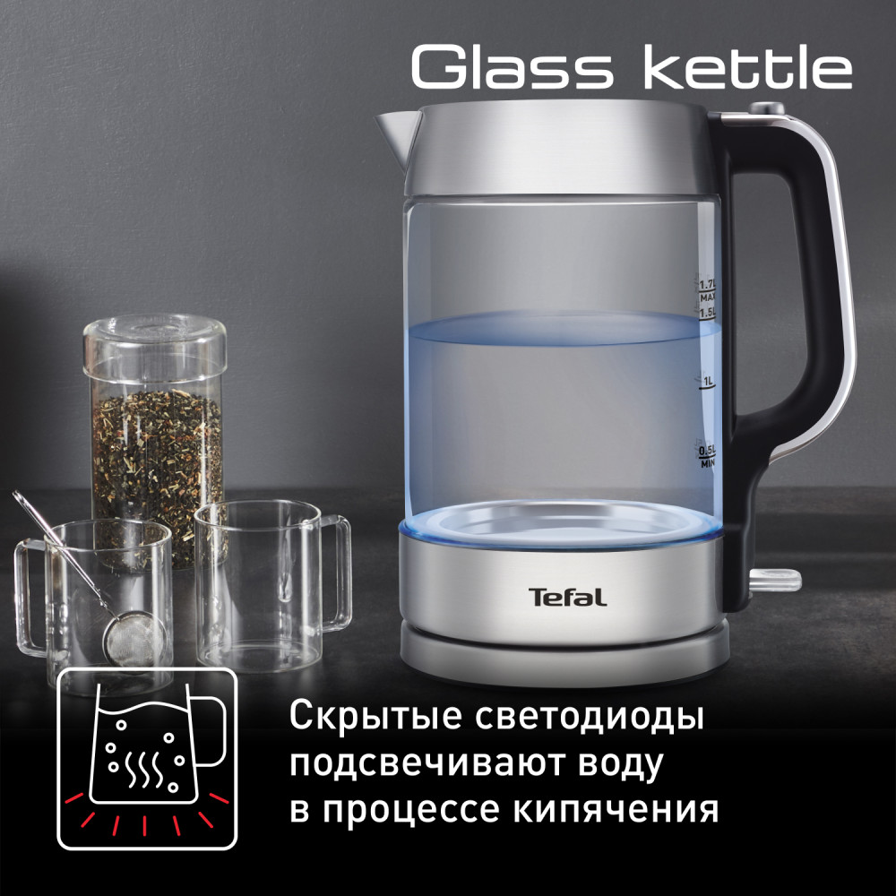Серия: Glass Kettle Удобство использования электрического чайника сочетается с элегантностью исполнения в Tefal Glass в стеклянном корпусе. Изготовленный из натуральных материалов, чайник полностью сохраняет естественный вкус и минеральный состав воды для приготовления самого ароматного чая. Процесс кипения воды завораживает благодаря уникальному дизайну — прозрачности стекла в сочетании со специальной подсветкой. Термоустойчивое стекло выдерживает резкие перепады температуры и гарантирует долгую службу чайника. Материал на 100% пригоден для переработки. |