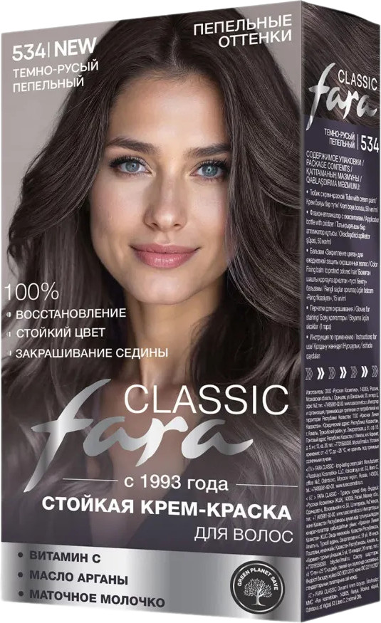 Fara Крем-краска для волос, оттенок 534 Темно-русый пепельный