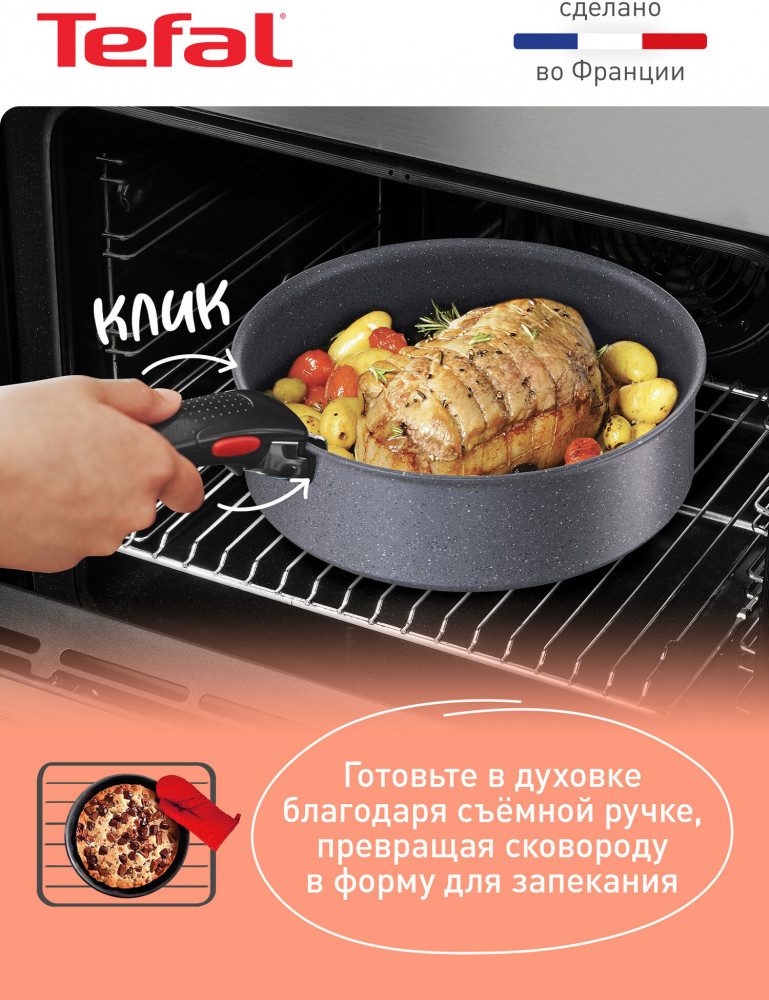 Каждое изделие имеет уникальный индикатор Thermo-signal, который поможет получить превосходный вкус и текстуру. Когда сковорода Тефаль достигает оптимальной температуры для начала готовки, цвет меняется на темно-красный. После приготовления подождите, пока посуда остынет, прежде чем ставить ее в холодильную камеру. Это сэкономит энергию, которая нужна для поддержания холода в холодильнике. Посуду можно мыть в посудомоечной машине, что дает простоту в уходе. А так же совместима с газовыми, электрическими, керамическими и индукционными плитами. Произведено во Франции по высоким стандартам качества. Готовьте с удовольствием вместе с Tefal Ingenio Natural Force!