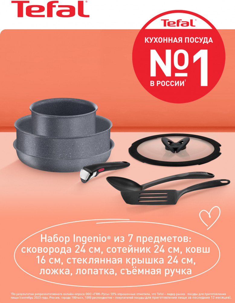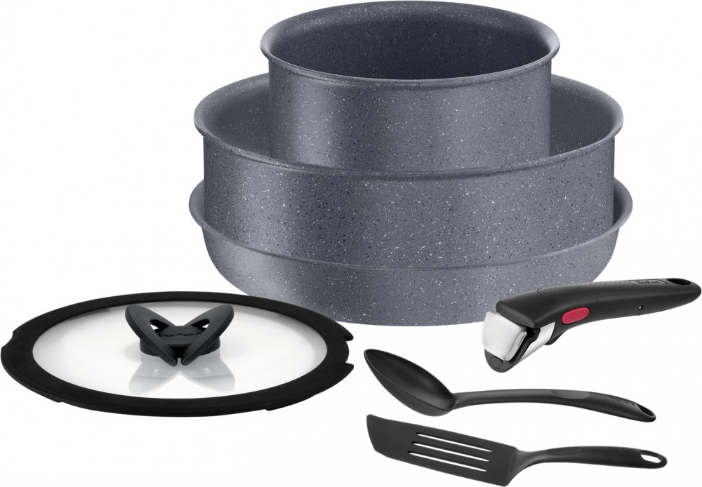 Набор посуды со съемной ручкой Tefal «Ingenio Natural Force» станет верным помощником в приготовлении любимых блюд! Готовить с Ingenio быстро, легко и вкусно: съемная ручка позволит с легкостью перемещать каждый элемент с плиты в духовку или в холодильник. Сковорода, ковш и сотейник компактно складываются друг в друга и экономят пространство. Стеклянная крышка отлично дополнит кухонный набор и впишется в любой дизайн кухни. Также в комплекте идет ложка и угловая лопатка из мягкого материала, который не царапает поверхность.
