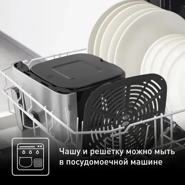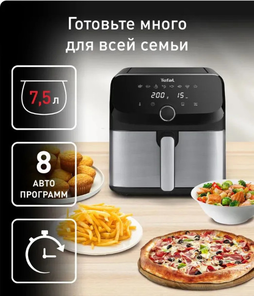 Tefal Аэрогриль EY855D10новинка В данный момент этот товар отсутствует в продаже. Возможно, у нас найдется аналогичный или похожий товар здесь. Серия: Easy Fry Mega Аэрогриль Tefal Easy Fry Mega EY855D10 — это идеальное решение для тех, кто стремится к здоровому питанию без лишних усилий. С мощностью 1700 Вт и вместимостью 7,5 литра, этот аэрогриль позволяет готовить разнообразные блюда для всей семьи, используя минимум масла. Благодаря технологии Hot Air, вы сможете наслаждаться хрустящей корочкой и насыщенным вкусом любимых блюд, не жертвуя при этом здоровьем. От домашней пиццы с хрустящей корочкой до нежной рыбы и аппетитного мяса — аэрогриль Easy Fry Mega приготовит вкусные и сбалансированные блюда для всей вашей семьи или большой компании друзей. Несмотря на свой компактный формат, этот функциональный аэрогриль оснащен глубокой чашей с антипригарным покрытием, которая вмешает до 8 порций блюд и пригодна для мытья в посудомоечной машине. Точные настройки температуры и времени, а также 8 автоматических программ гарантируют идеальный результат вне зависимости от выбранного рецепта. А с приложением My Tefal планирование ежедневного меню станет вашим любимым занятием! |