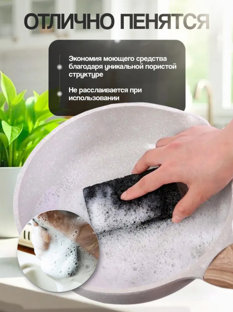 Эти губки станут помощниками на вашей кухне, помогая вам быстро и эффективно справиться с мытьем посуды. Каждая губка изготовлена из качественных материалов, которые обеспечивают долгий срок службы и сохраняют свою форму даже при интенсивном использовании. Черный цвет губок не только стильно смотрится на вашей кухне, но и отлично маскирует загрязнения. Набор из 10 штук — это решение для большой семьи или для тех, кто ценит экономию и практичность. |