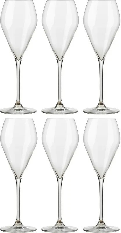 Набор бокалов (фужер) для шампанского Rona Мод 240 мл (6 штук в упаковке) <br><br>Бокал-флюте «Мод» по традиции повторяет форму флейты. Но при создании этой серии производитель немного видоизменил классические фужеры флюте, добавив им оригинальную форму. В результате получился фужер, который имеет вытянутую форму и небольшой диаметр, но более округлую форму. <br>Объём товара 240 мл. Высота 215 мм, а диаметр 72 мм. <br>Хрустальный бокал смотрится изящно и стильно на тонкой ножке. Качественный прозрачный материал подчёркивает стиль посуды, он впечатляет элегантным блеском и тонкими стенками, что характерно исключительно для великолепного хрустального стекла. <br>Бокал «Мод» отлично подходит для подачи вина. В нём лучше всего раскрывается вкусовым букетом белое вино, но в некоторых случаях посуду используют для предложения гостям розовых сортов. <br>Также товар актуален для шампанского, ведь именно в такой вытянутой форме чаши пузырьки медленно поднимаются наверх, постепенно насыщая игристый напиток кислородом и придавая ему более выраженный и приятный вкус. Элегантная посуда дополнит стильное застолье, добавит сервировке нежность и привлекательность. <br><br>Внимание! Товар поставляется в транспортном коробе.