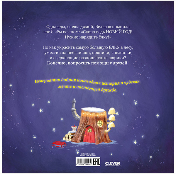 Однажды, спеша домой, Белка вспомнила кое о чём важном: «Скоро ведь НОВЫЙ ГОД! Нужно нарядить ёлку!» Но как украсить самую большую ЁЛКУ в лесу, уместив на неё шишки, пряники, снежинки и сверкающие разноцветные шарики? Конечно, попросить помощи у друзей! Невероятно добрая новогодняя история о чудесах, мечте и настоящей дружбе. |