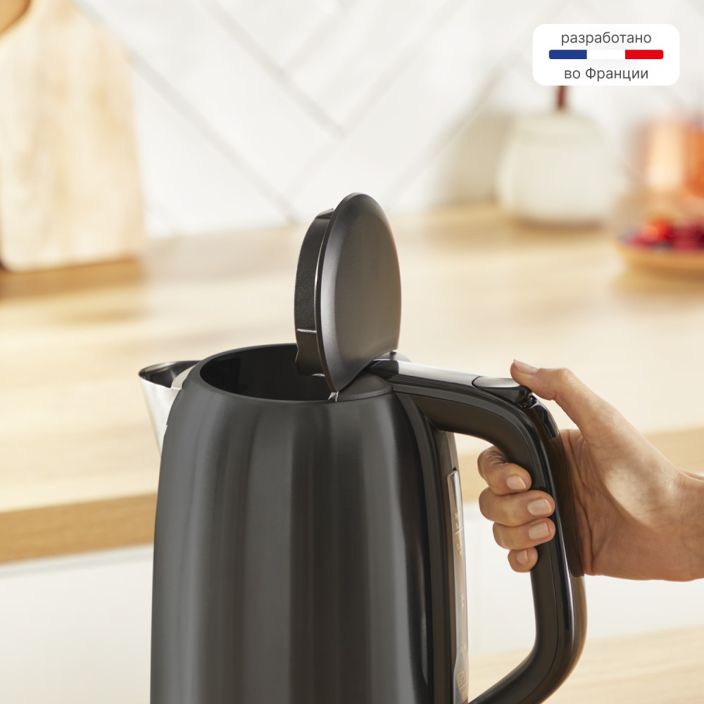 Серия: Subito Чайник электрический Tefal Subito KO5S08E0 — это идеальный выбор для быстрого и удобного приготовления горячих напитков. Бытовая техника для кухни оснащена прозрачным окном с уровнем и индикатором для одной чашки, с помощью которой вы сможете легко отмерить нужное количество воды, экономя до 35% энергии и времени. Это особенно удобно для быстрого приготовления чая или кофе, не тратя лишние ресурсы. Открывание металлического электрочайника одной рукой стало ещё проще благодаря кнопке, которая автоматически открывает крышку, обеспечивая удобство при наполнении и очистке. Съёмный фильтр предотвращает накопление накипи, обеспечивая чистоту воды и насыщенный вкус напитков. Мощность 2400 Вт обеспечивает быстрый подогрев воды, а большой объём кухонной техники 1.7 литра идеально подходит для семьи или гостей, обеспечивая до 7 чашек горячей воды за один раз. |