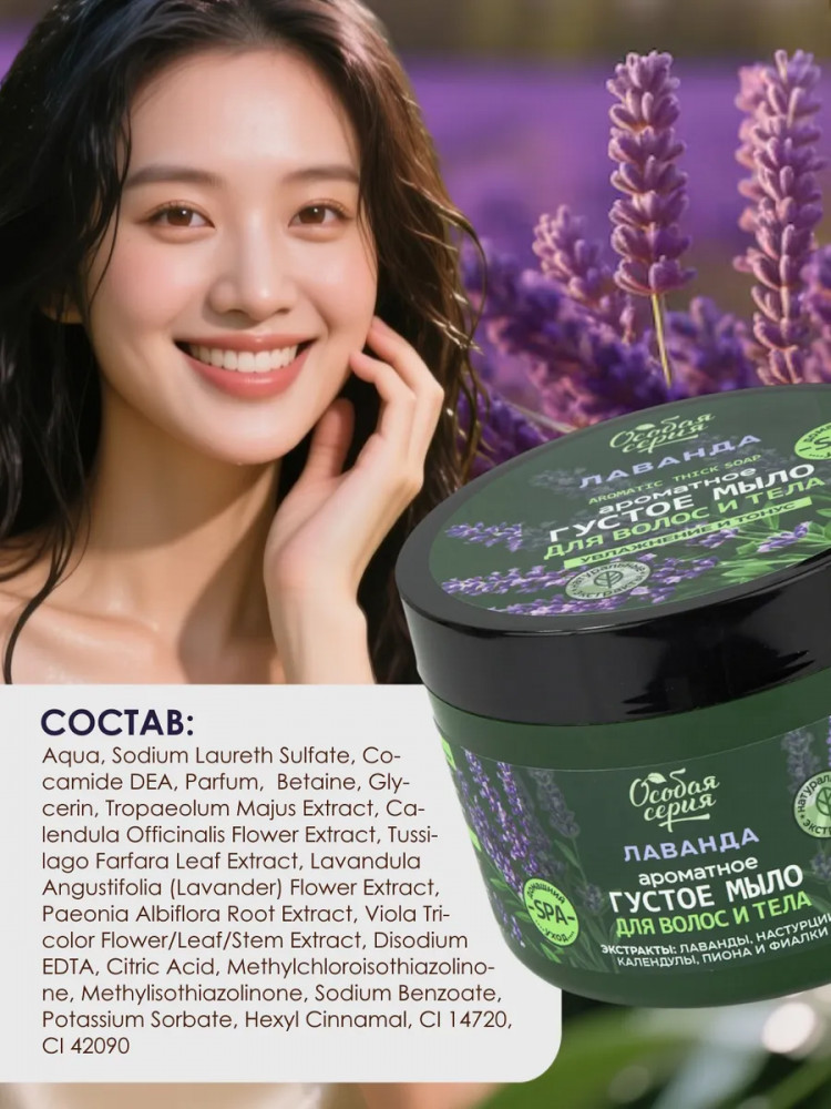 Особая серия Ароматное густое мыло для волос и тела «Лаванда. Увлажнение и тонус»