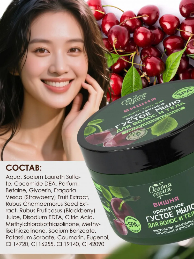Особая серия Ароматное густое мыло для волос и тела «Вишня. Увлажнение и сияние»