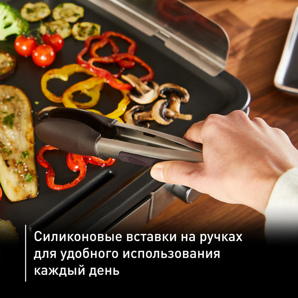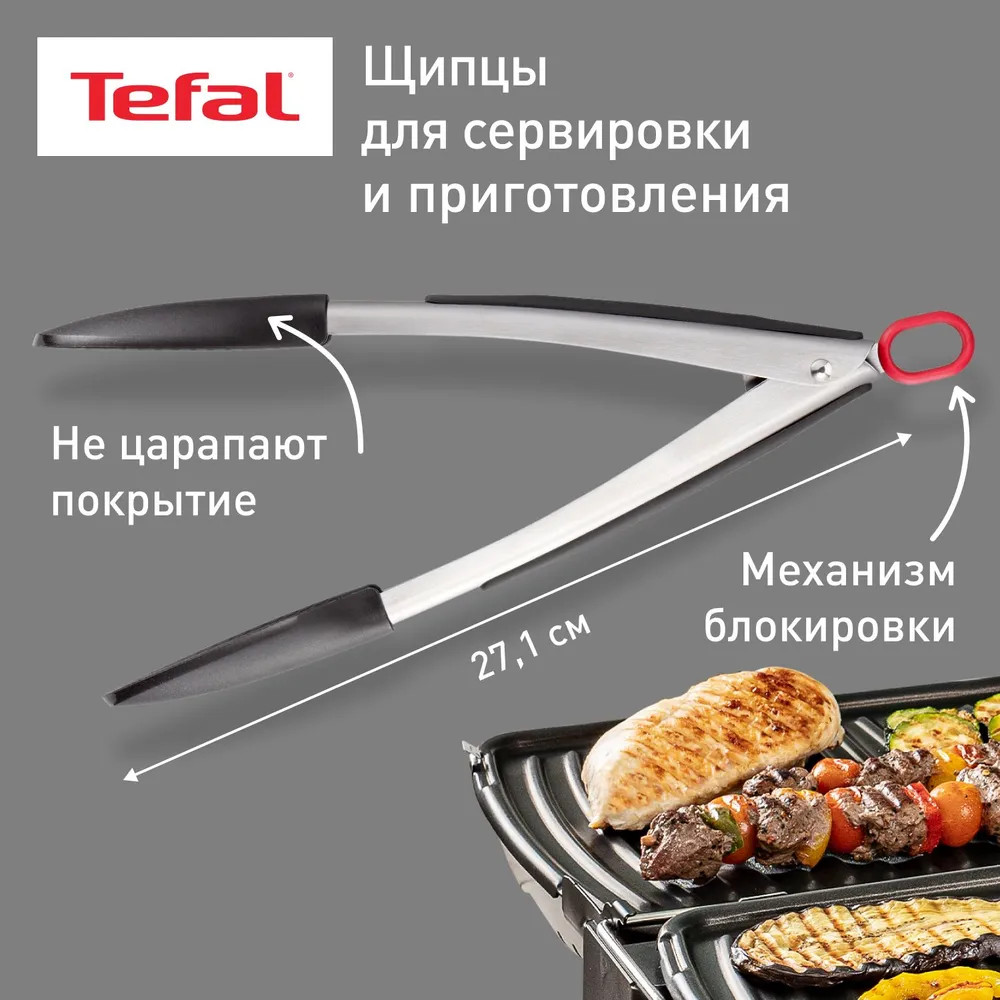Сложно устоять перед ароматной, сочной, приготовленной на электрогриле или открытом огне едой. Будь то вечеринка с друзьями на даче, эксперимент с морепродуктами или рецепт вегетарианского бургера — аксессуары от Tefal помогут вам полностью раскрыть ваши кулинарные таланты. Специальные щипцы для гриля позволят удобно переворачивать любые ингредиенты, а благодаря нейлоновым лопаткам они не повреждают антипригарное покрытие и выдерживают температуру до 230°C. Щипцы оснащены механизмом блокировки и петлей для подвешивания, а также совместимы с посудомоечной машиной — их удобно как хранить, так и мыть. |