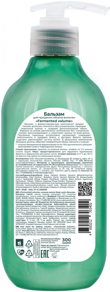 Biologica Бальзам для придания объема волосам «Fermented volume»