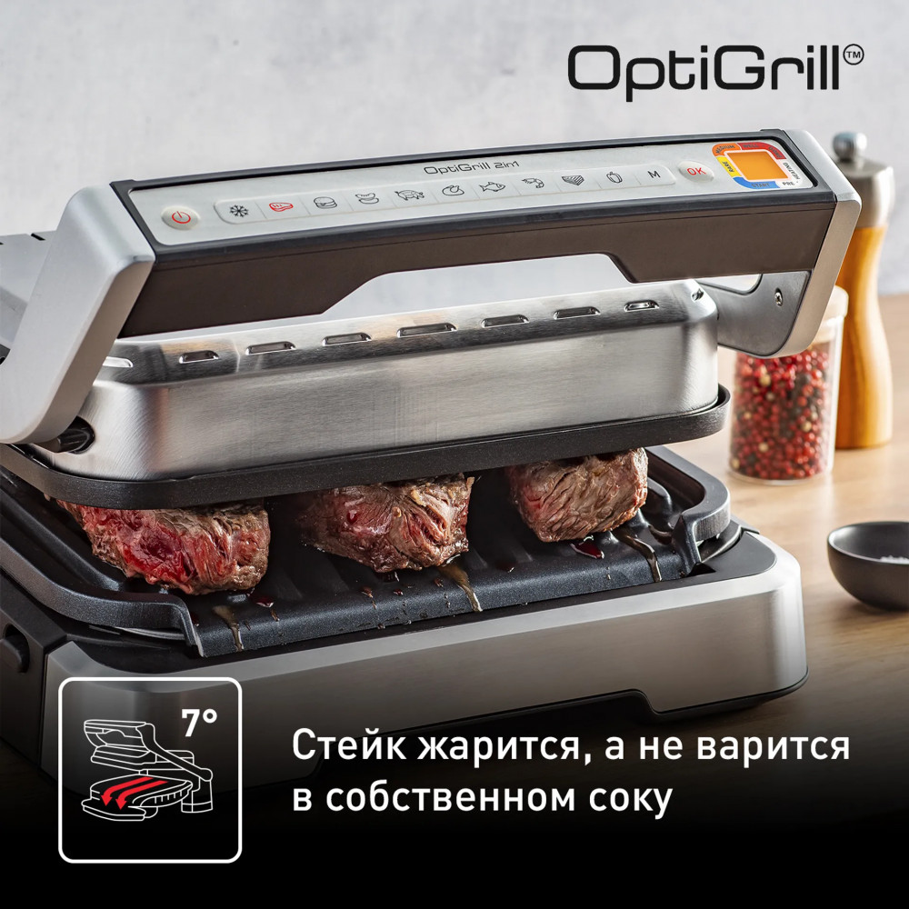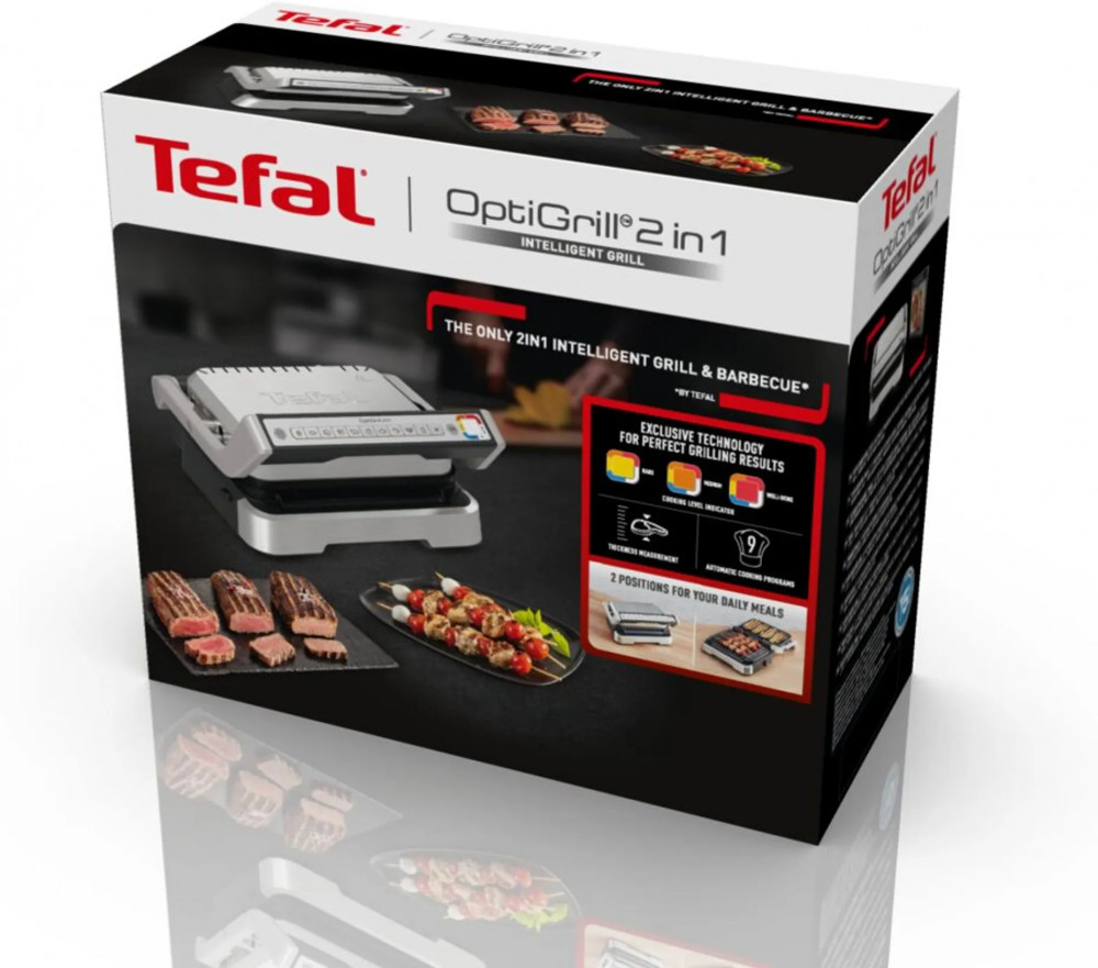 От сочного мяса и рыбы до аппетитных овощей и многого другого — OptiGrill 2 в 1 сделает всё за вас. Откройте для себя умный гриль и барбекю в одном приборе, который идеально подходит для приготовления всех повседневных блюд. Его запатентованная технология автоматически измеряет толщину мяса, рыбы или овощей вплоть до 1 миллиметра, учитывает количество кусков и автоматически регулирует время приготовления для достижения идеальных результатов. Наряду с девятью автоматическими программами приготовления и наклонными пластинами, которые помогают стекать жиру, OptiGrill 2 в 1 позволяет готовить разнообразные вкусные и здоровые блюда. Кроме того, в комплект входит доступ к специальному приложению, предлагающему сотни персонализированных и пошаговых рецептов, которые обязательно вам понравятся! Готовьте разнообразные блюда прямо у себя дома с умным электрическим грилем OptiGrill от Tefal!