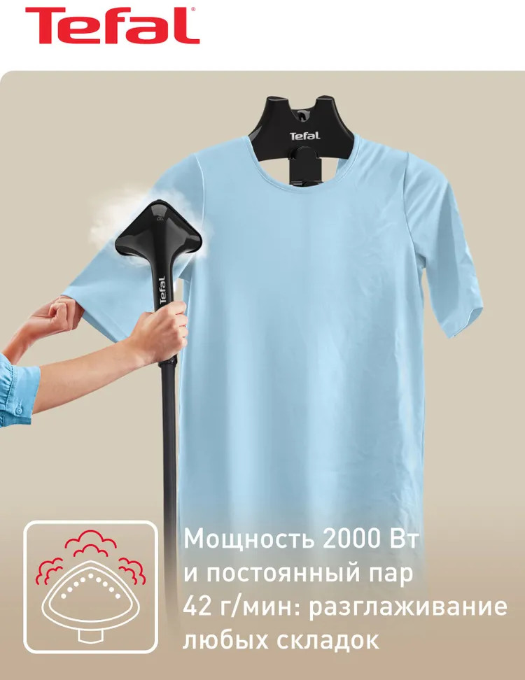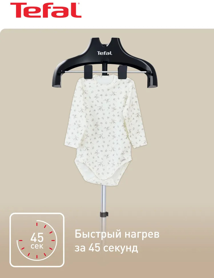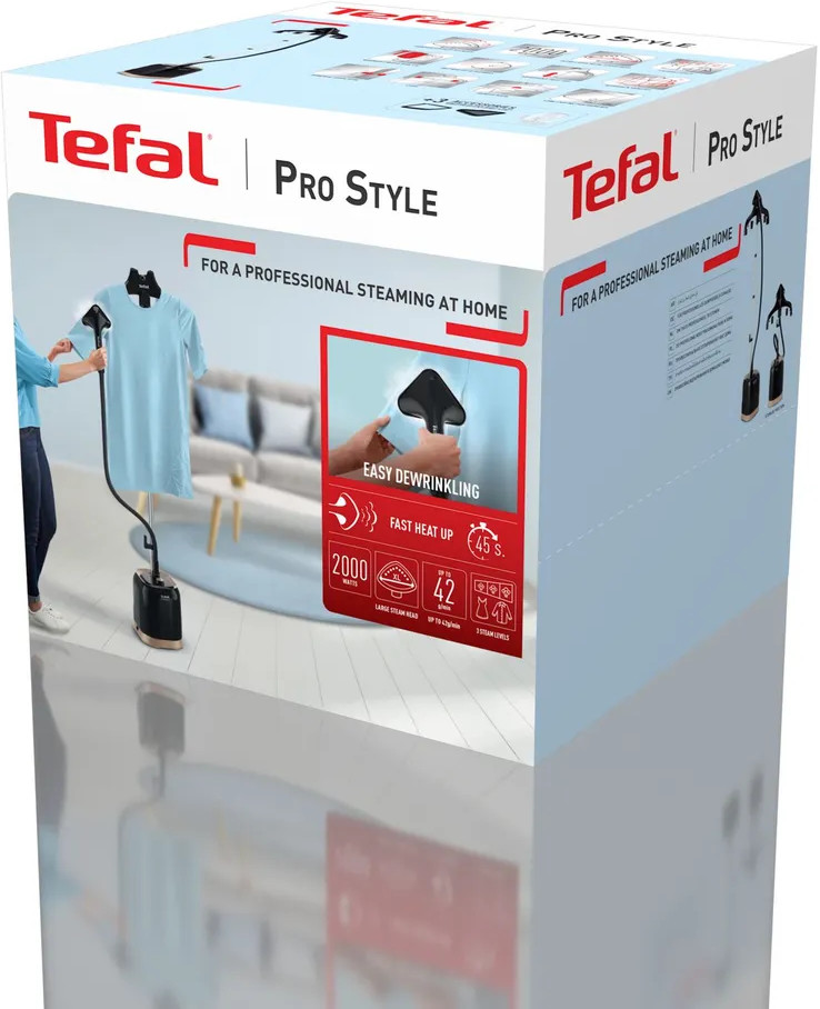 Вертикальный отпариватель Tefal Pro Style быстро, эффективно и безопасно справляется со складками и заломами на любом типе ткани благодаря мощной подаче пара до 42 г/мин и трем режимам работы. Отпаривайте и дезинфицируйте одновременно — горячий пар не только разглаживает одежду, но и позволяет избавиться от неприятного запаха и освежить ткань. Подача пара до 42 г/мин эффективно разглаживает складки и заломы, а также освежает и дезинфицирует ткань. Горячий пар безопасно и эффективно борется с неприятными запахами, освежает и дезинфицирует одежду. 3 уровня мощности пара позволяют подобрать оптимальный режим работы для любой ткани, даже самой деликатной. Вертикальный отпариватель готов к работе через 45 секунд после включения — идеально для быстрого приведения одежды в порядок перед выходом из дома.