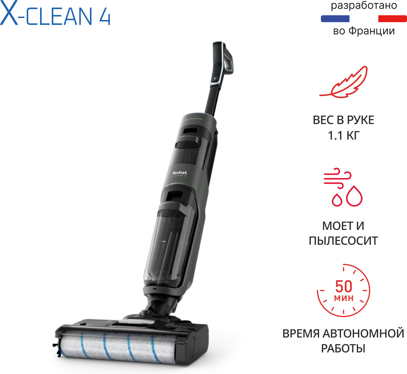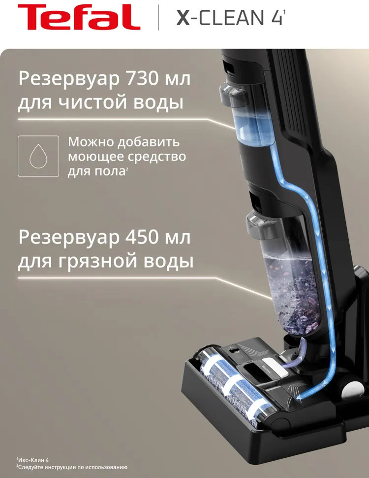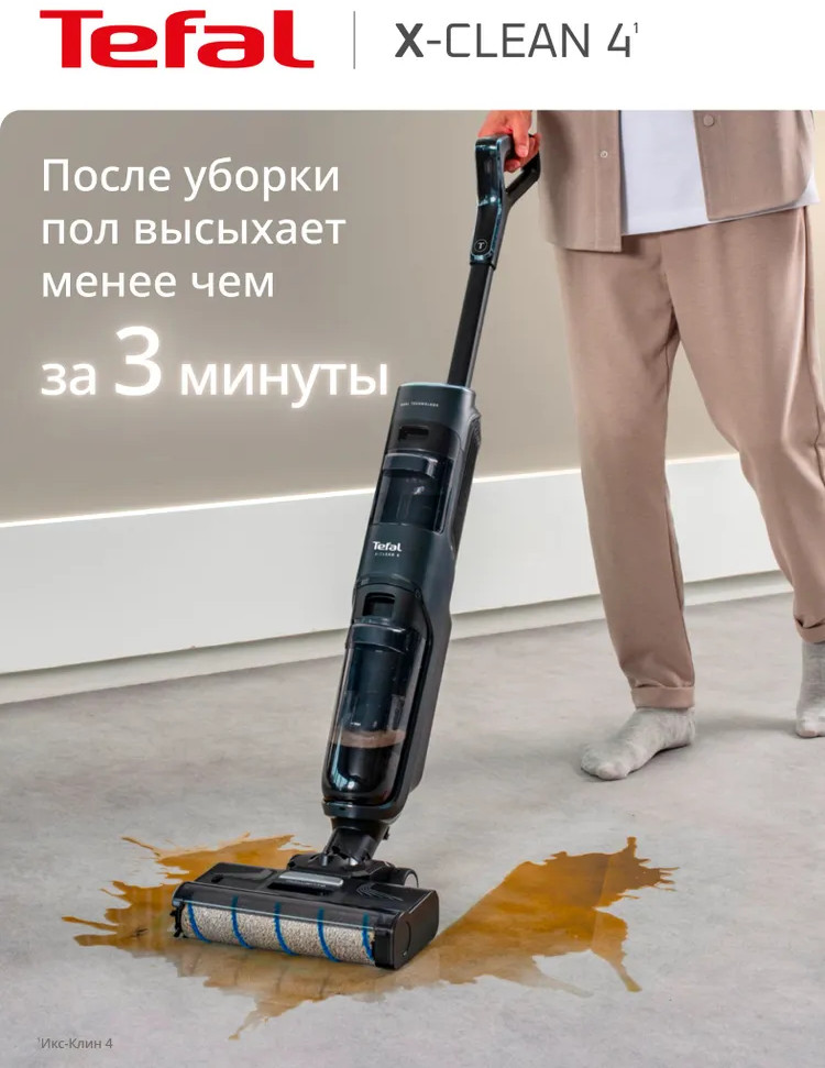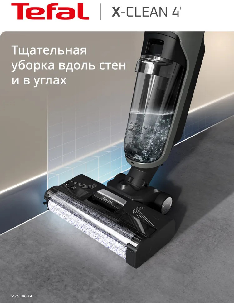 Быстрая и лёгкая уборка вместе с моющим пылесосом X-clean 4. Отсутствие проводов и функция самоочистки сделают уборку проще и эффективнее. X-Clean 4 одновременно моет полы и всасывает грязь, эффективно удаляя с напольных покрытий даже мокрые загрязнения и жидкости. Пыль, шерсть, следы от обуви, разлитый сок и остатки еды на полу теперь легко убрать одним движением. Благодаря специальному скребку и смачиванию водой, роликовая щётка очищается на протяжении всей уборки, исключая возможность загрязнения пола и гарантируя идеальный результат. Умное обнаружение загрязнений для автоматической регулировки мощности всасывания и подачи воды в зависимости от степени загрязнения поверхности.