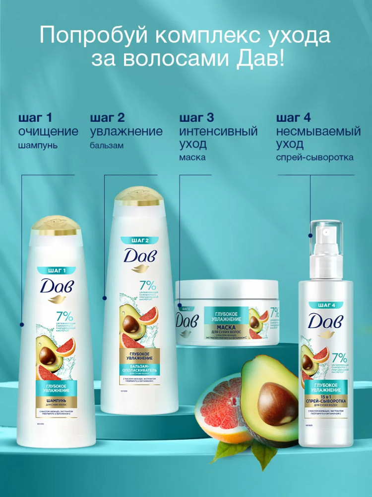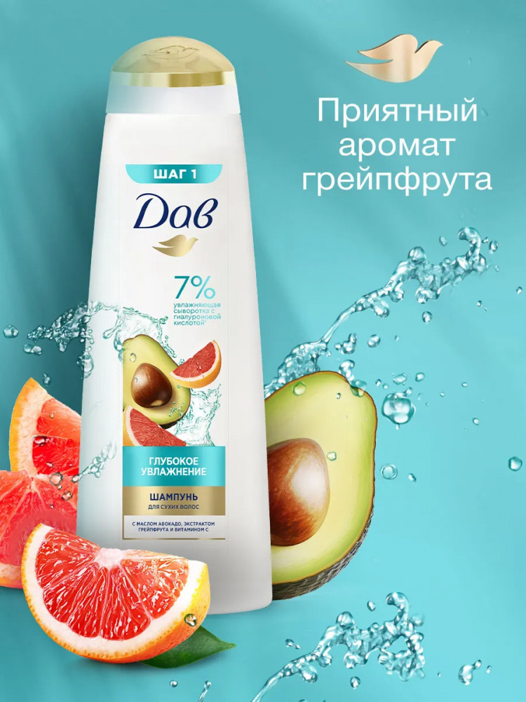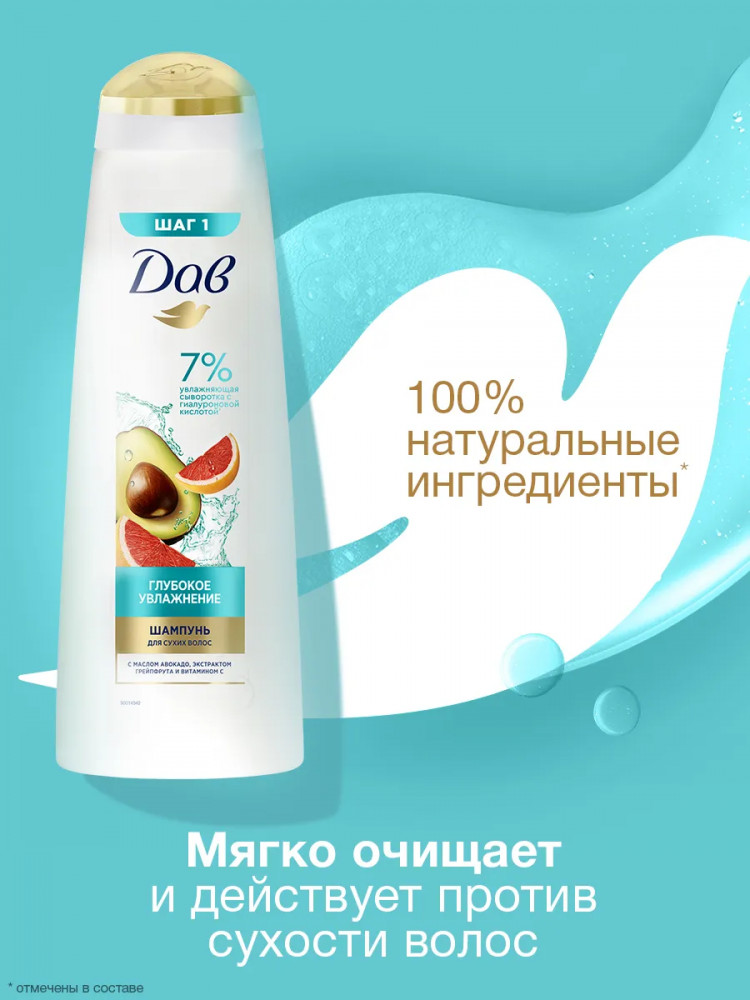 Dove Шампунь для волос увлажняющий с гиалуроновой кислотой
