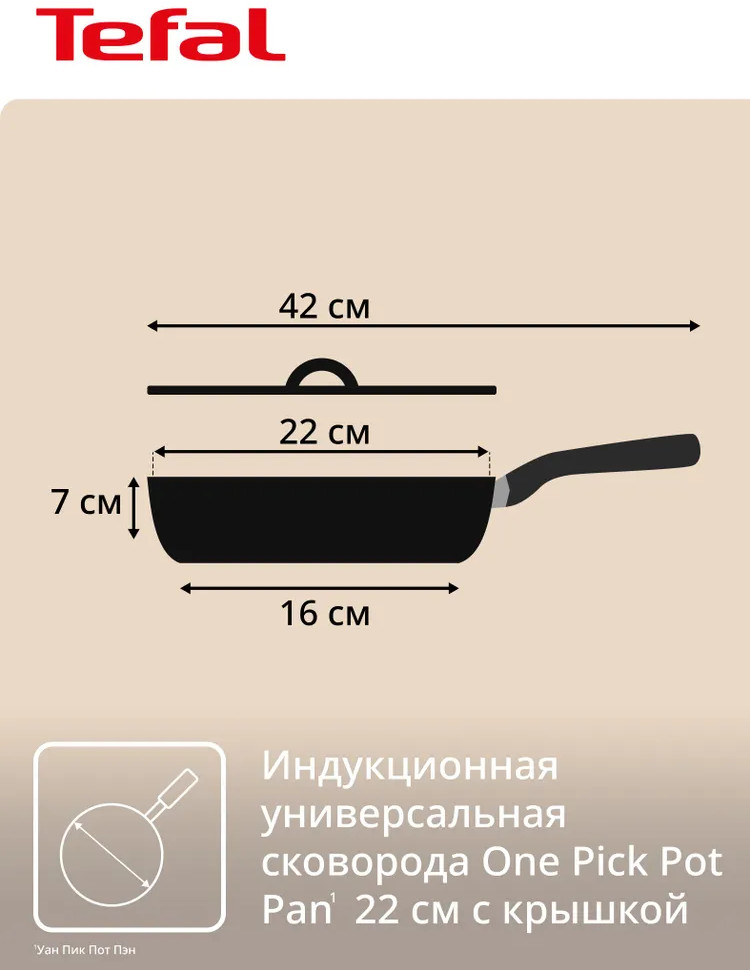 Tefal Сковорода универсальная с крышкой «One Pick Pot»