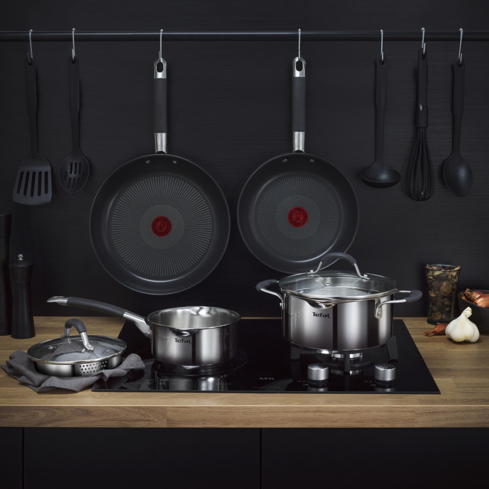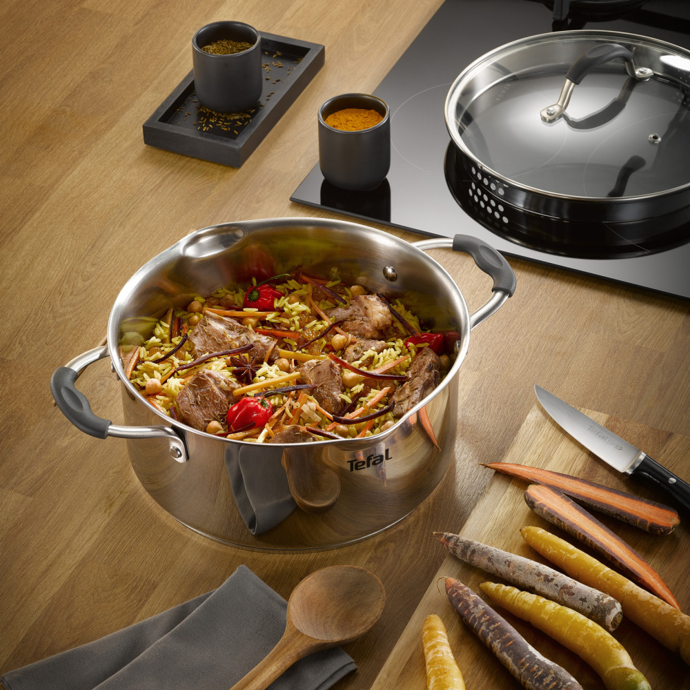 Серия: Illico Благодаря продуманным деталям, элегантному дизайну и долговечным материалам, набор посуды Tefal Illico станет вашим идеальным помощником на кухне и поможет с легкостью освоить новые рецепты. Набор сделан из высококачественной нержавеющей стали с гарантией 10 лет, сочетая в себе высочайшее качество материалов и инновационные технологии, например, индикатор нагрева Thermo-Signal™, который показывает идеальный момент для начала приготовления блюд. Еще больший комфорт гарантирует крышка с отверстием для слива жидкости, встроенная мерная шкала и специальные носики для слива. |