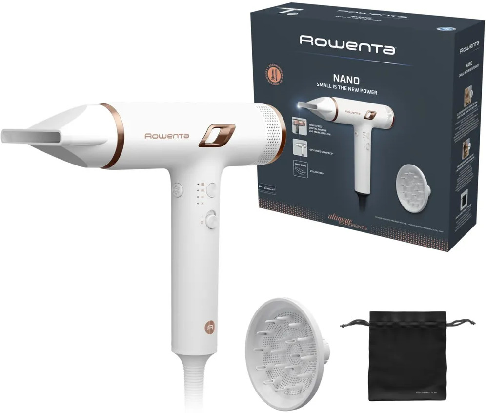 В комплекте — концентратор для точной укладки и диффузор для объема (входной диаметр — 4 мм). Дополнительные плюсы: съёмный фильтр для лёгкой очистки, защита от перегрева и сетевой шнур длиной 1,8 м для свободы движений. Фен поставляется с удобным мешочком для хранения и всей необходимой документацией. Rowenta HY8120F0 — это надёжность, комфорт и профессиональный уход за волосами каждый день.